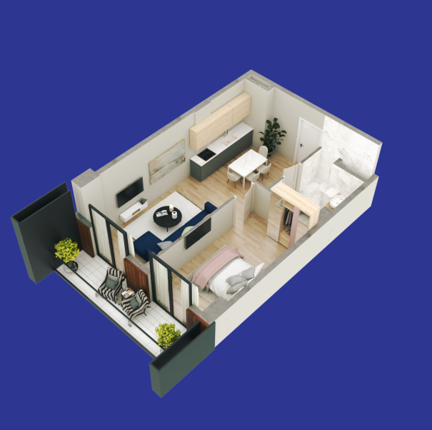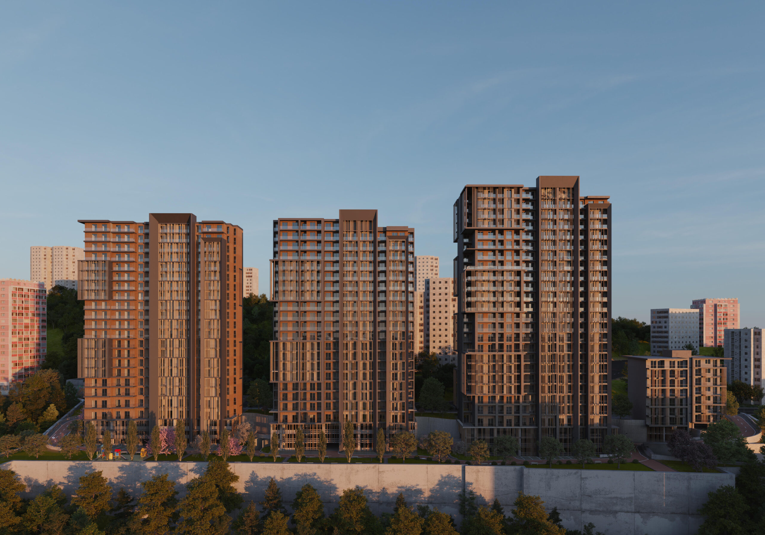 The project includes four high-quality residential buildings designed for your comfort, with a landscaped inner courtyard, a children’s playground, and relaxation areas.